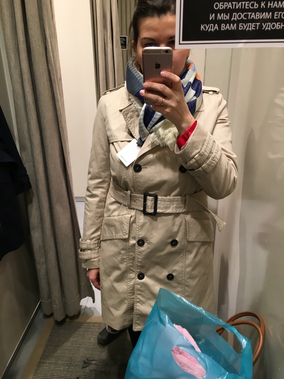 Я думаю тренч в принципе не ваш вариант. Вам нужно чтобы ваши стройные ноги от талии видны были, то есть куртка, пиджак и стройные ноги. А то так кажется что вы крупная и силуэт как шкаф получился. Удивительно даже, оптический обман. А у вас какой тип фигуры?