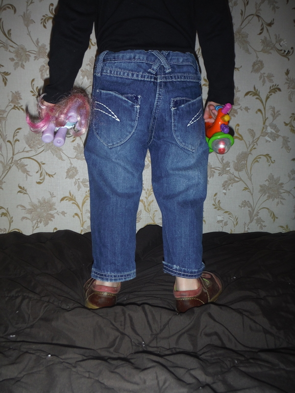 Детская модаПрошу совета со стороны. Есть у меня джинсы Artigli (на 18 мес). Но когда ей было 1,6 - они были уж очень большие , и сейчас в 2,6 стали хороши в попе на максимальной утяжке, но вот длина как-то коротка.