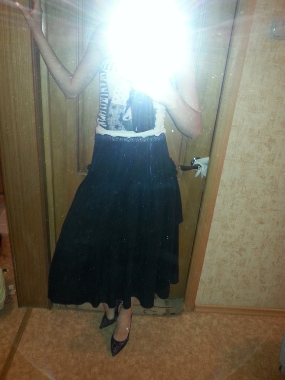 ПосоветуйтеДевочки! Обращаюсь к вам впервые) Нашла в шкафу вот эту юбку.Досталась она мне в дар много лет назад ни разу я ее не одевала.Так вот,стоит ли вообще ее носить и если да ,то с каким верхом и обувью. Ткань шифон на подкладе,ярусная.Юбка воздушная и легкая.Два нижних яруса в напуск.Длина до середины икры (на фото кажется, что длиннее).Сори за качество фото,лучше не получилось. ..
