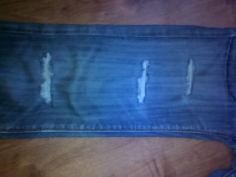 Фото к сожалению нет, но рву регулярно)))) 'утилизирую' так старые джинсы)) Прикидываю сначало дырку, потом можно на себе, можно так трёте пемзой поперёк!! джинс. Должны появиться продольные ниточки, а поперечные превратятся в пушок. Не трите прям до дырки! Лучше остановиться чуть заранее. После стирки этот пушок выстирываться, а продольные ниточки становятся белыми.