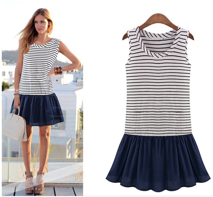 А у меня есть платье, которое я покупала к морю, модель лучше не придумаешь: верх как у майки, далее прямое (возможно чуть приталенное), длина до щиколотки, по бокам от колена разрезы, сшито из вискозы темно-синей в белую полоску. Если ткани хватает, советую.