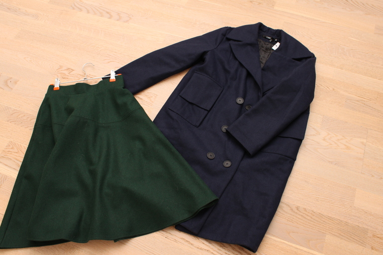 Замечательное пальто- кокон на WB обошлось мне сего за 3800 (L осталось и вернётся моя S) и это 100% шерсть!! На ткань не липнет ворса ( юбку уже носила)