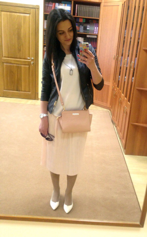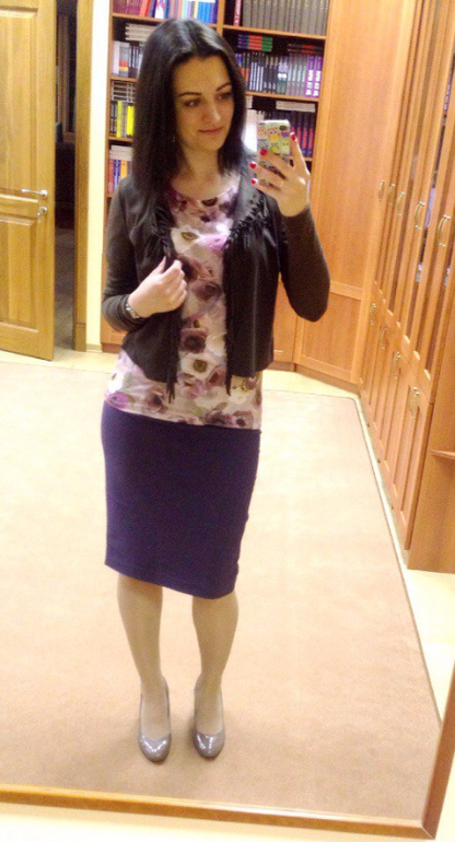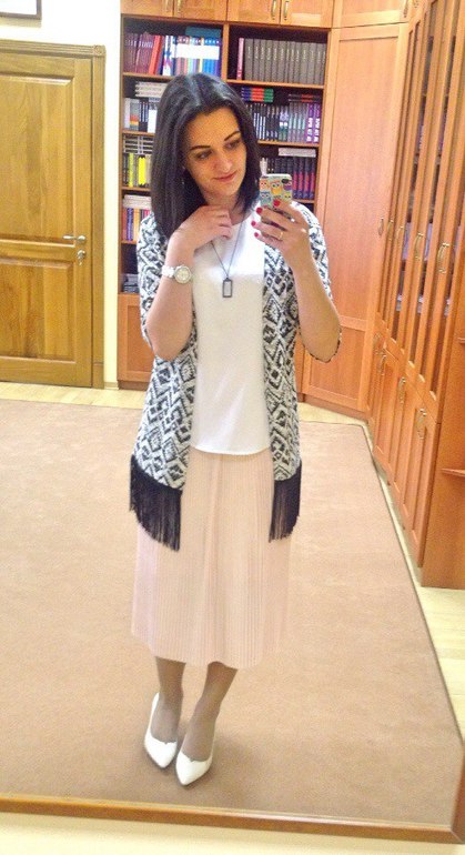 Юль а мне не нравиться кардиган из пакетика с этой юбкой и блузкой... ну не могу ощущение что он не отсюда... туфли мммм