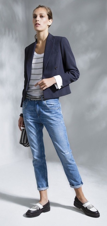 Мне за 30, я бы джинсы надела с рванинкой. Может бойфренды. Рубашку и лодочки. И косуху, если есть)