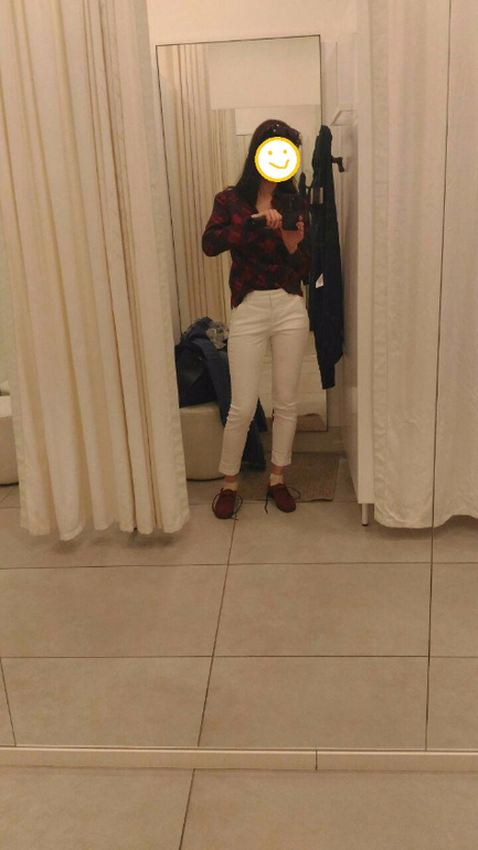 Искала белые летние брюки или джинсы такие, чтобы не были, как колготки (в смысле не тянулись). Нашла, но сидят они как-то... Хоть я и не ношу очень короткий верх, все равно гложут сомнения. Короче, брать или нет?