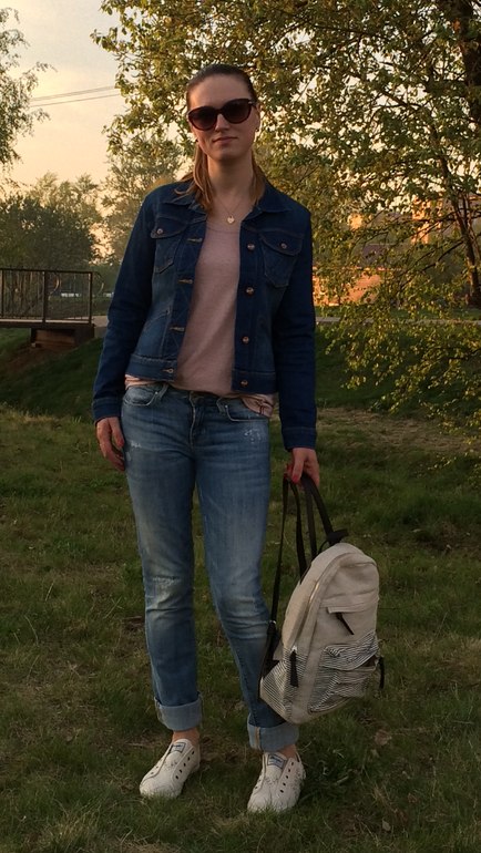 ДжинсыTotal jeans я не носила наверно со школы и вообще, кажется, довольно рисково это. И вдруг неожиданно купила себе джинсовку. И кеды. И рюкзак. Впала, так сказать, в детство))) и мне кажется, все неплохо сложилось? Или нет?