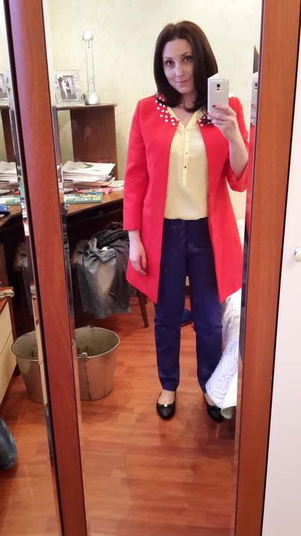 Кофта вроде и сочетается с брюками, ну что-то не то