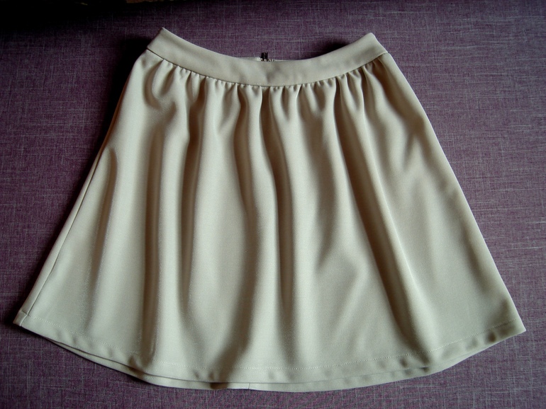 Форма - что-то среднее между юбкой-полусолнцем и трапецией. Юбка хорошо сидит на талии но кажется мне жутко бесформенной и в следствии этого, проблемы с подбором нужного дополнения.