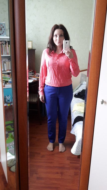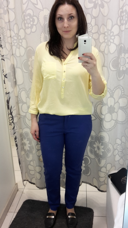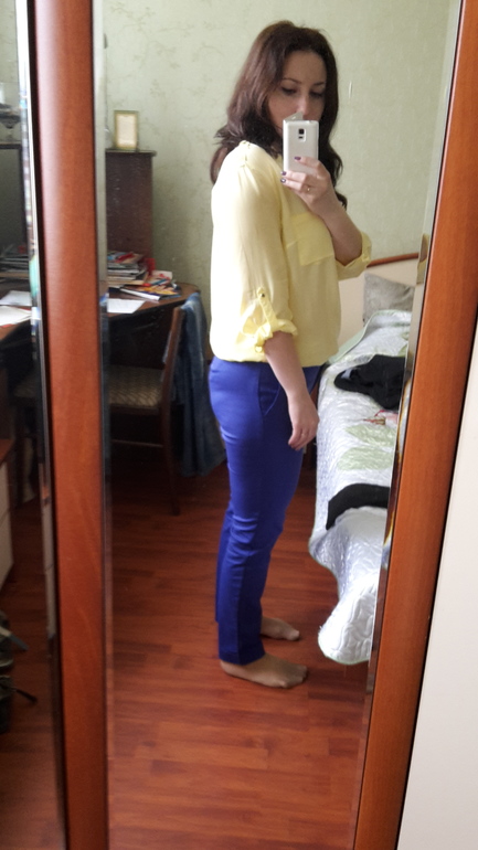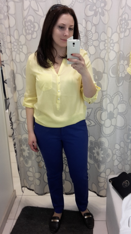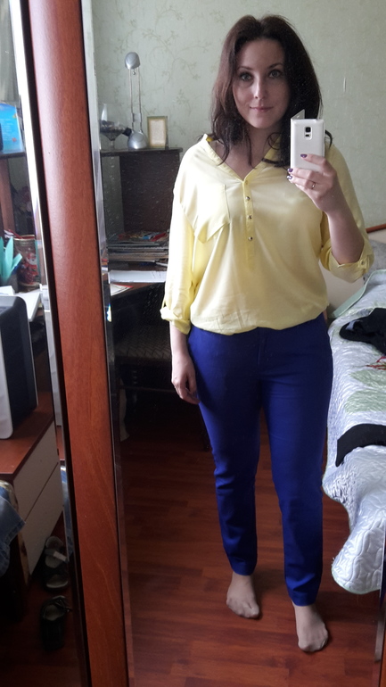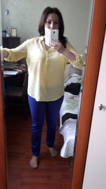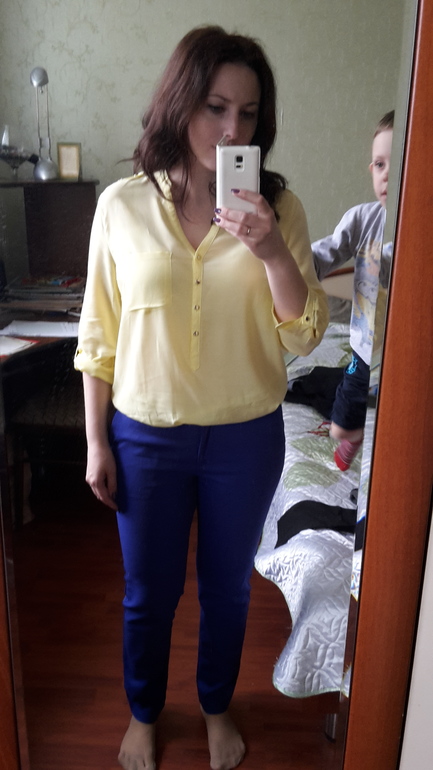 Мне желтая на вас не нравится. У меня блузки ползут назад, если не "обеспечена" грудь - проще говоря, если рассчитано на маленький бюст или даже вообще на его отсутствие (вытачек нет).