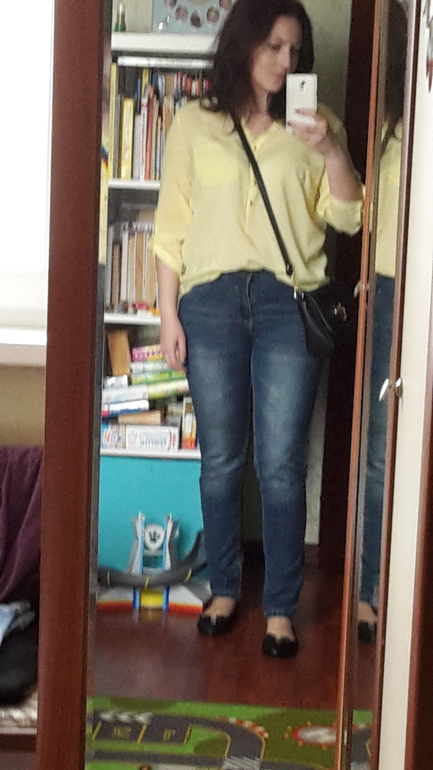 У желтой такой свободный крой. Я их воспринимаю только с корсетом под грудь и юбкой а-ля Бохо. Или же с широким прямом (типа бандажа) и обтягивающими кожаными штанами - этакая женщина-пират.