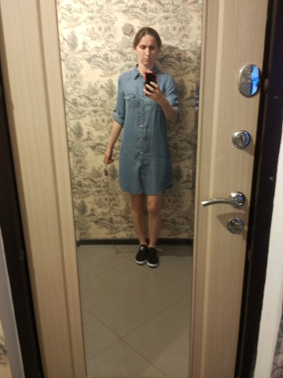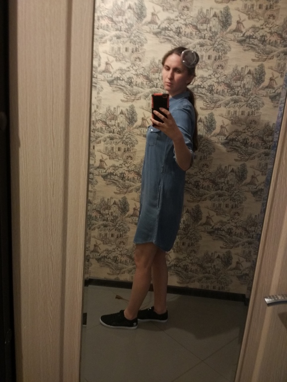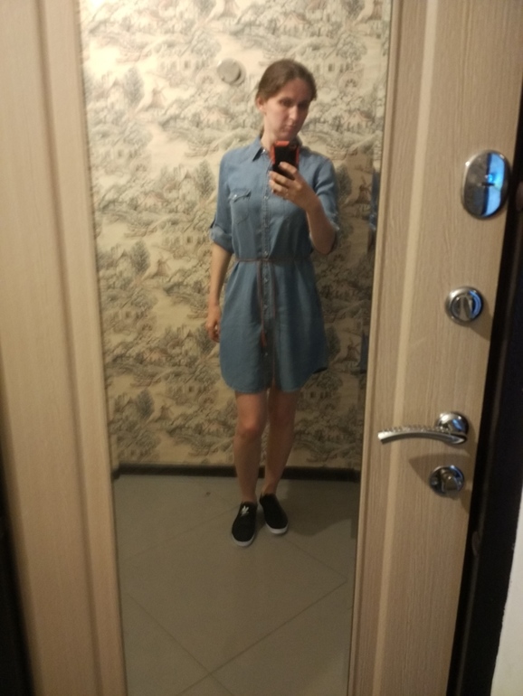Одеждапробежалась по магазинам , купила себе наконец-таки джинсовое платье-рубашку. Это без пояса