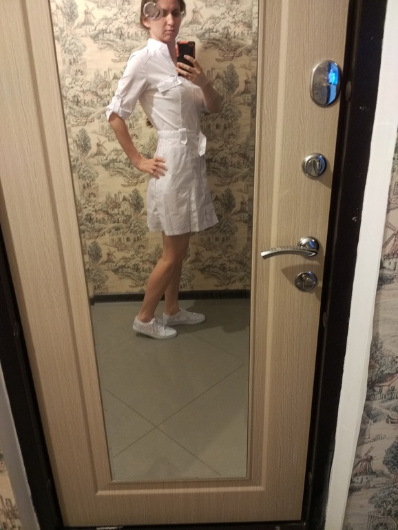 Тоже сегодня такое взяла... померила и повесила назад. Носить точно не буду.)))) Мне напоминает техничку в школе)))). Хотя конечно модно наверное). В рабочем( белом ) халате вы мне нравитесь).