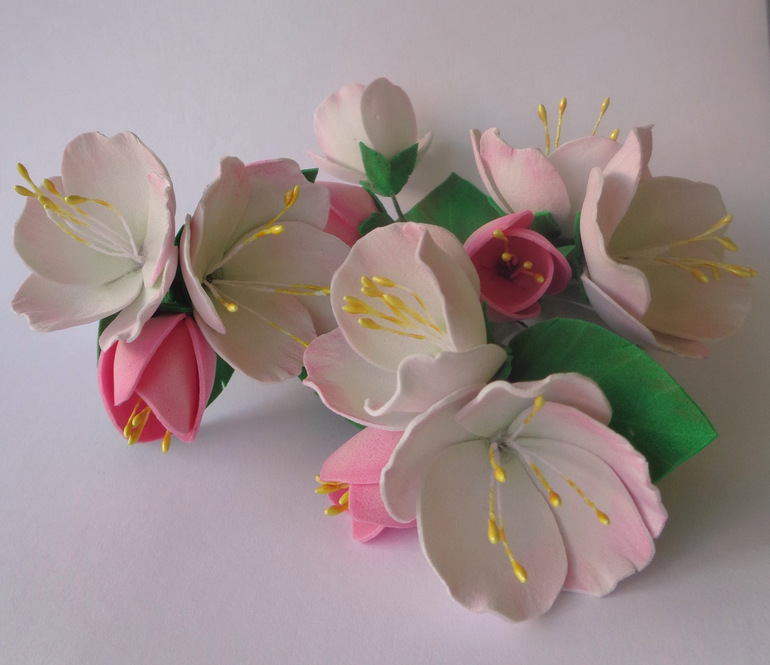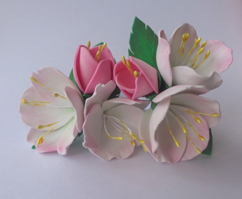 Это фоамиран, он мягкий, немного тянется, легко окрашивается, например, пастелью.