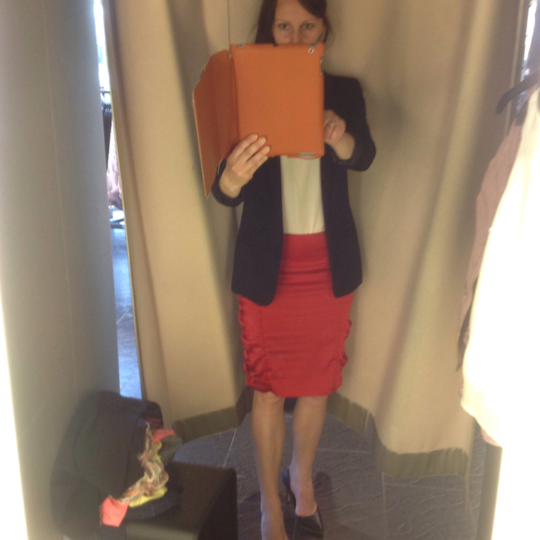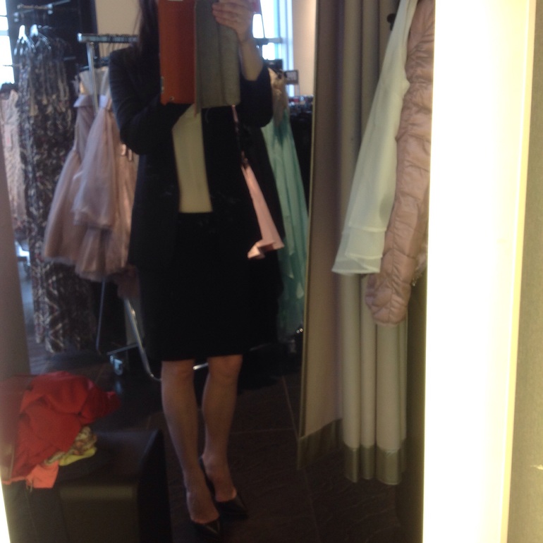 Первая юбка скорее прямого силуэте, нежели карандаш. И такое ощущение, что они с вас "свалились" - сидят на бедрах, а не на талии. От этого вытягивается верхняя часть и ноги сразу короче. А вот пиджак хорош.