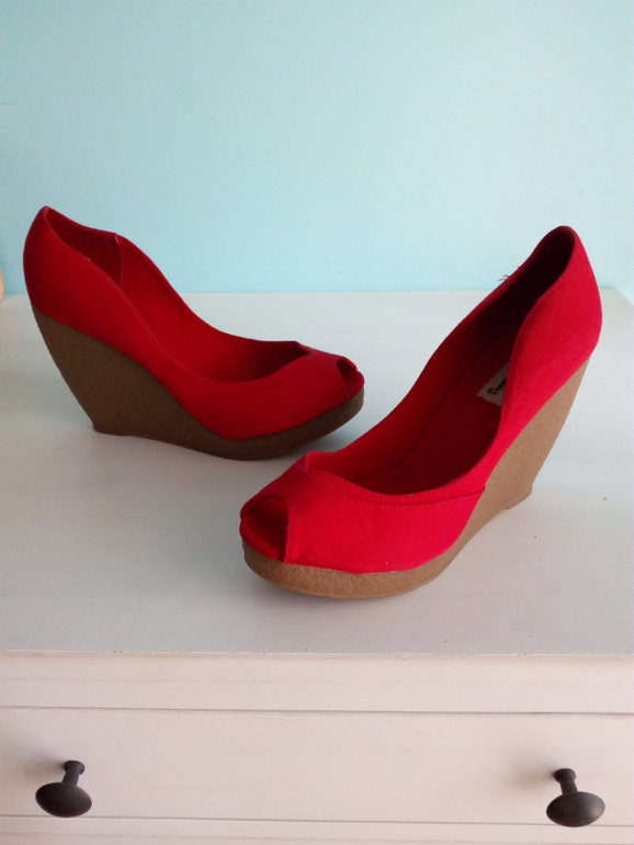 и такие туфли из ткани, как и сумка. Они вроде подходят сюда, но, боюсь, не смогу уже ходить на таких каблуках:(