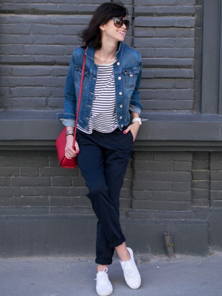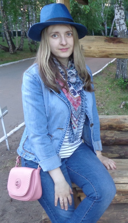 Деним с денимом тоже перебор.. Кожаная курточка или стеганая курточка были бы лучше!