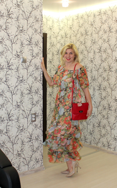 ОдеждаОх, сегодня понедельник, день тяжелый, особенно для тех, у кого были очень бурные выходные )) Таких бурных я уже давно не проводила. Поэтому сегодня есть некоторая помятость) Надела свое самое противоречивое платье. Я его купила в СП, повелась на шифон и то, что драконище будет прикрыт, мол на работу будет гуд. Ну и тогда я на 5 кг еще меньше весила и 46й размер еще носила... до образа очень далеко, поэтому советуйте, что с чем носить (не носить не могу, так как не так много вещей летних, которые имеют 3/4 рукав).
