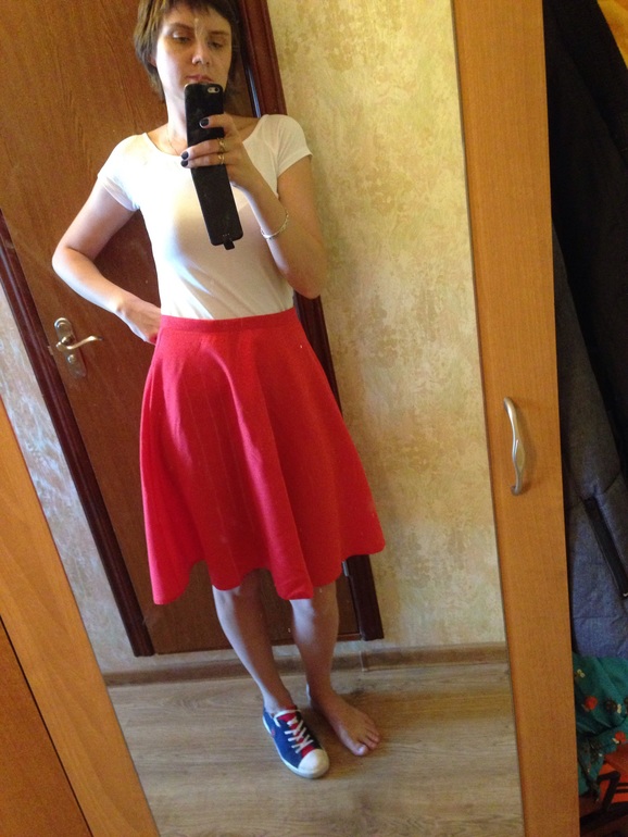 Джинсовый жилет, либо куртка джинсовая. Тогда и кеды будут в общей теме! Они у Вас яркие, будет хорошо. Деним уравновесит все и сделает комплект совершенно нескучным!!!