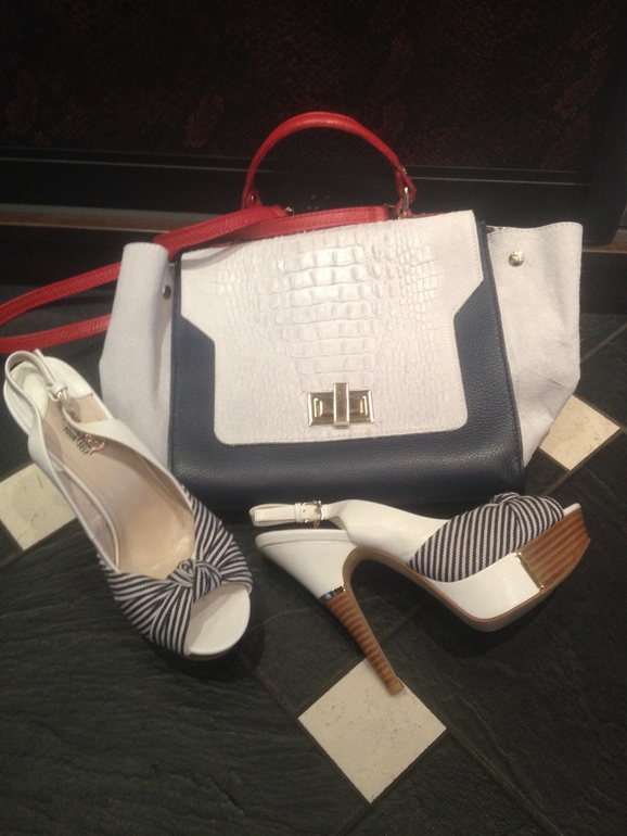 Там на босоножках якоря,сумка тоже красно/сине/белая-то есть строго морская тематика))))так что или эти 3 цвета,или полосочка...