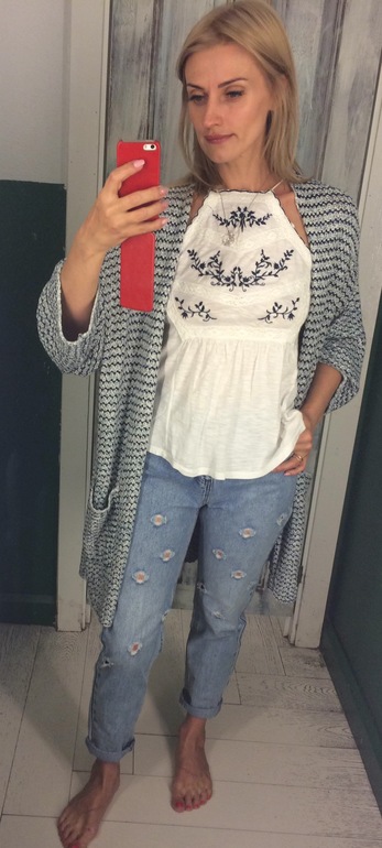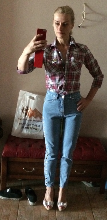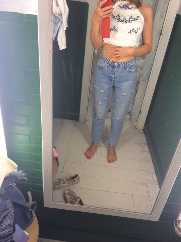 Увидела джинсы, очень понра , но не пойму как они должны сидеть / и моё/ не моё)))) и топ с кофтюлей Аля накидка как на мне? Фото из примерочной( фотограф из меня тот ещё))) пы: сы: пока доехала до Меги и там размер меньше закончился))) ухвати таки Как?