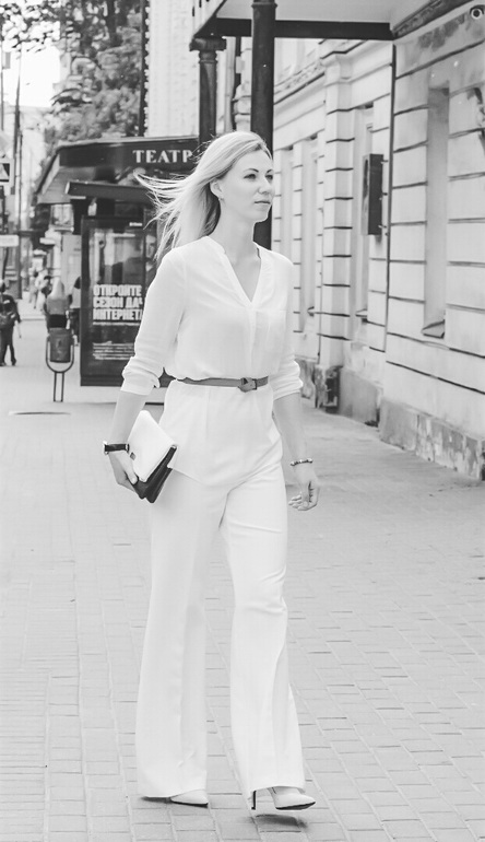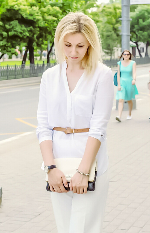 Образ красивый. Но вот белый все же не нужно к лицу. Вот такую бы блузу в пастельных оттенках.