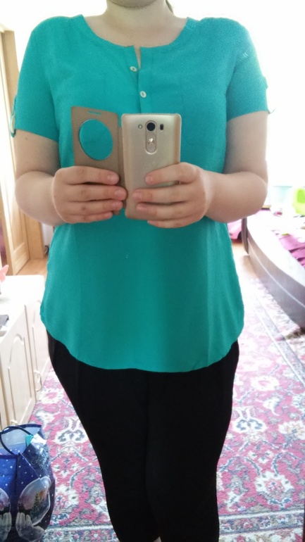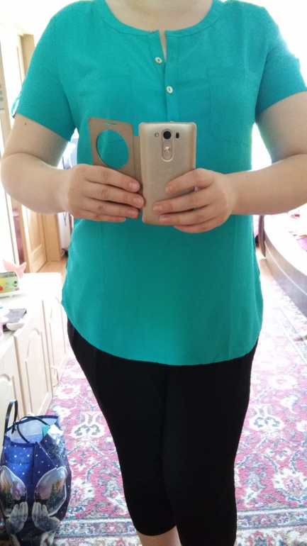 вот блуза , с ВБ, 100 проц вискоза белорусская фирма. Цвет супер. Качество тоже только мнется моментально. Мама говорит что никакущая кофточка. Мне уже надоело искать на себя что - то (( подскажите , как вернуть ее назад. Этикетка есть. Не обращайте на фото я в домашних лосинах...