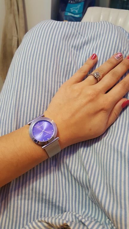 Купила себе внезапно там часики: размер циферблата и ширина ремешка очень удачно сели на руку. Ну и синий циферблат покорил: нет у меня пока ни одних часов с темным циферблатом.
