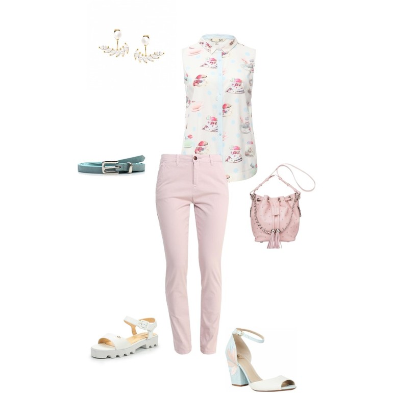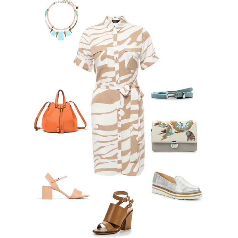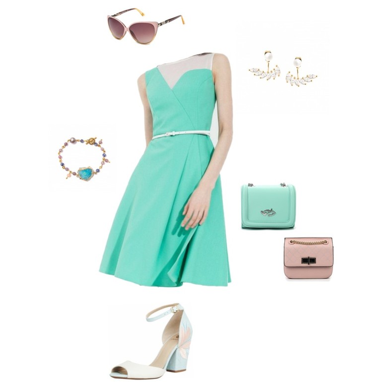 Сюда я бы еще добавила помаду малинового оттенка, чтобы поддержать туфли и светлый браслет или часы.