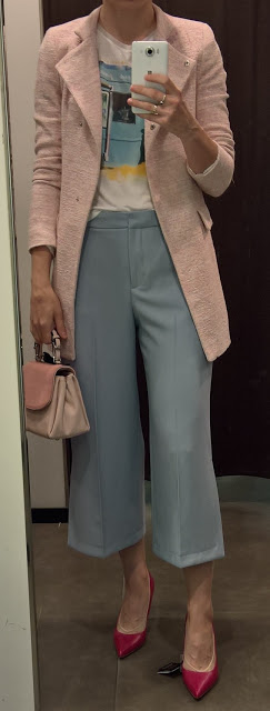 В Zara увидела голубые кюлоты, решила прямо там сделать комплект, с чем их можно носить.