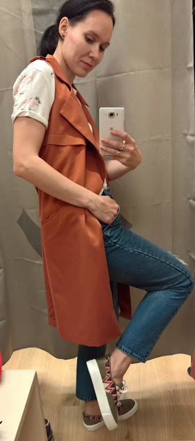 Тоже самое и в Bershka. Очень понравился тренч без рукавов. Собрала такой комплект
