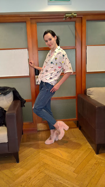 Когда мы увидели обувь, нежнейший розовый, черный и серый кролик, то не могли от них отойти!))) Это что-то невероятное. А главное, как выяснилось позже, очень удобно!