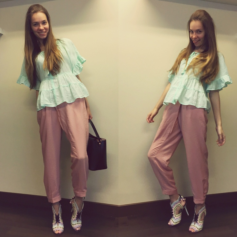 Ждала твой пост и пропустила)))все туфли отличные,вписались идеально,брюки розовые сначала не поняла,сейчас разглядела и захотела)))сумку тебе пастельно-розовую надо!!срочно!к 22 числу)))