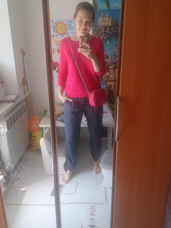 ПосоветуйтеЧто-то я одела и сомневаюсь... Так можно? Или это не красиво? Фото плохое, сильное солнце было. На мне комбез темносиний в горох и бенеттон фуксия свитер. Хочу выгуливать свой комбез, но на верх для тепла что-то нужно, лето нынче не то)))
