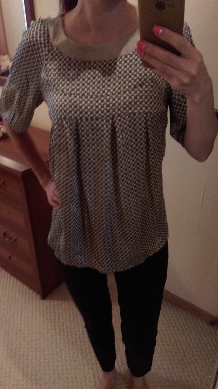 5. Темная блуза. Она не натуральная, ткань тянется. Одно время активно носила на работу, был даже оранжевый кардиган к ней, но последние пару нет не с кем ее приткнуть.