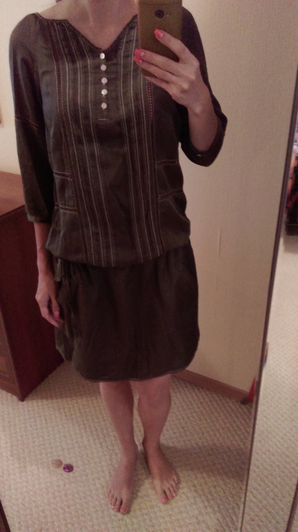 1. Платье цвета хаки, в составе шелк. Одно время было любимым. Сейчас же такую длину не ношу и цвет кажется мрачным.