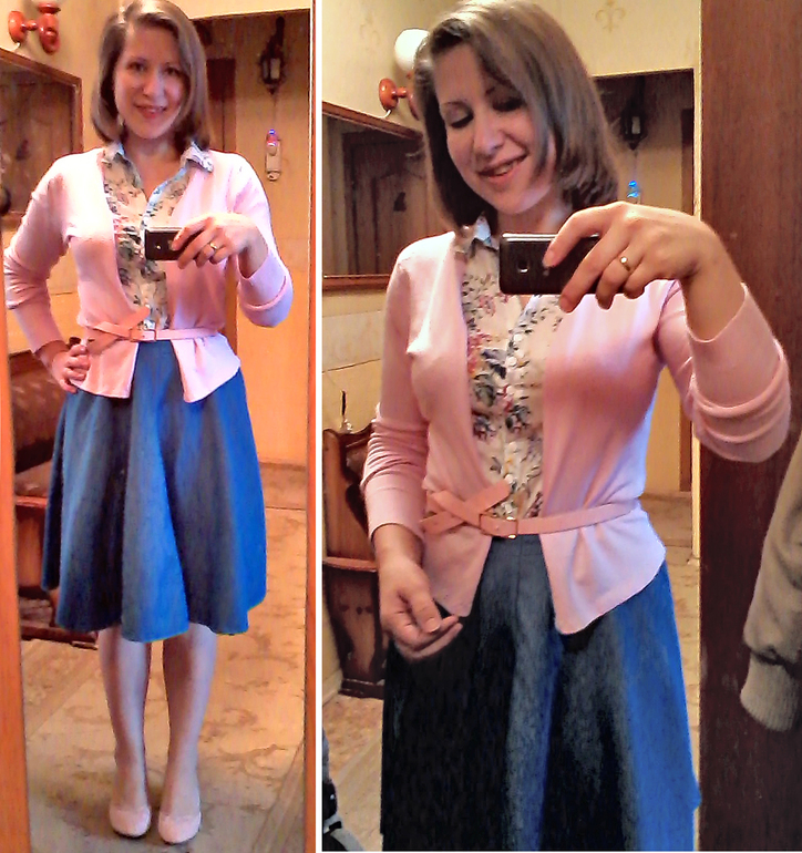 Второй образ нравится, первый что-то не оч... Кардиган чтоль не вяжется..