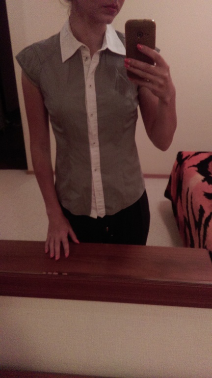 3. Строгая блуза из хлопка. Офисная, но серая и цвет не мой теперь мне кажется. Сейчас у меня нет особого дресс-кода на работе, поэтому лежит пылится уже несколько лет.