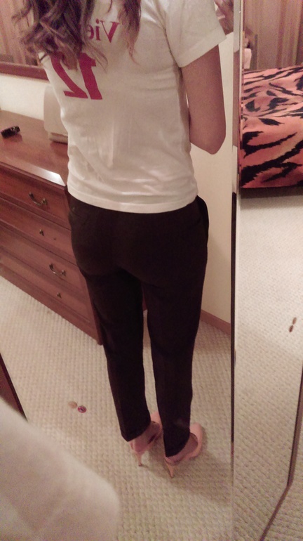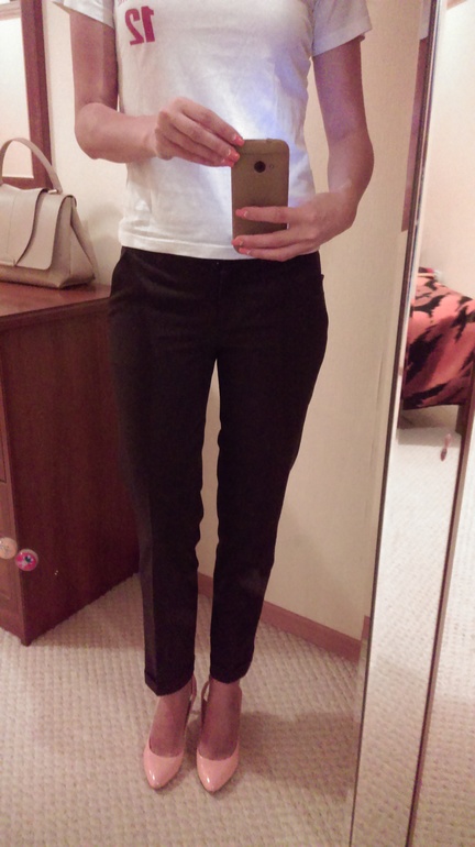 6. Темно-коричневые брюки из струящейся ткани. Перешиты штанины уже, были длинные и широкие в строгом стиле. Сомневаюсь - пробовать носить или ну их?