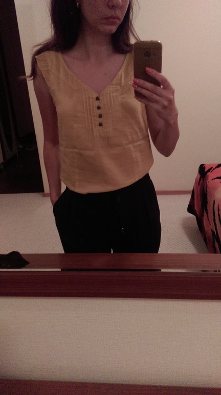 1. Желтая тоненькая полупрозрачная блуза. Особо не носила. Пару раз на море.