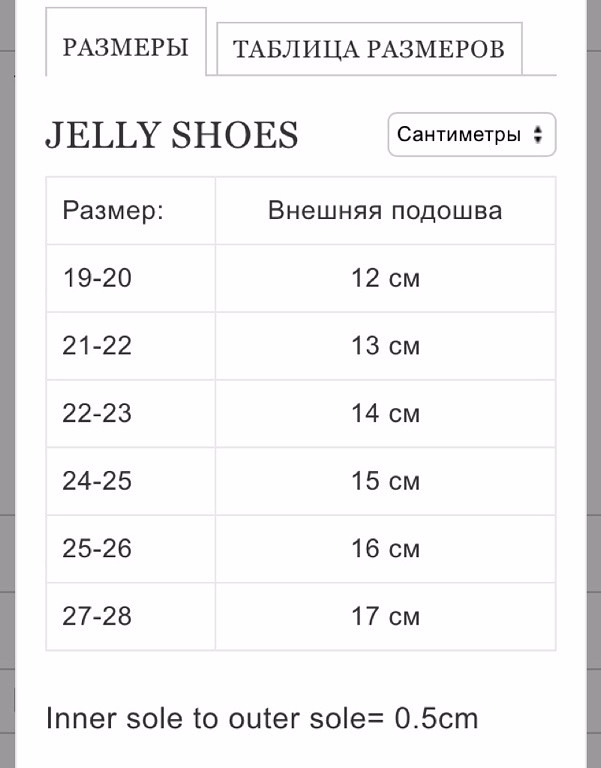 Мы носим мелиссу и мне кажется первая табличка соответствует. Недавно купили как раз таких кошечек, 27 размер, нога у нас 16,3 -16,5... Как раз запас есть небольшой в 0,5 см, а предыдущий размер впритык, но говорит, что не жмут.