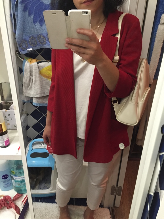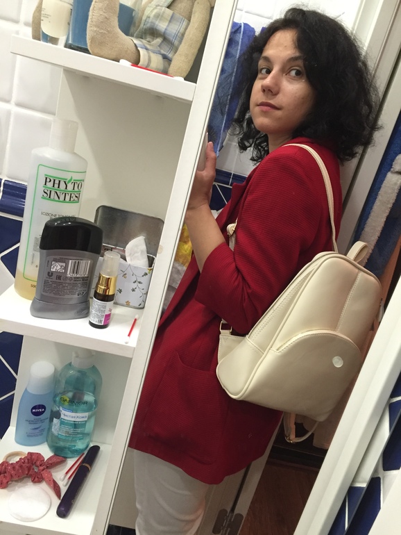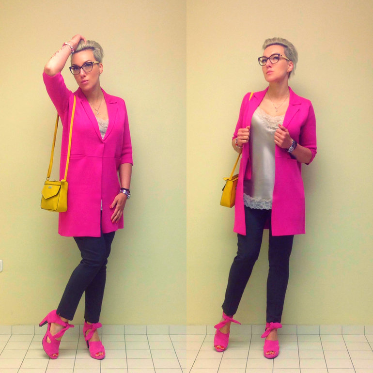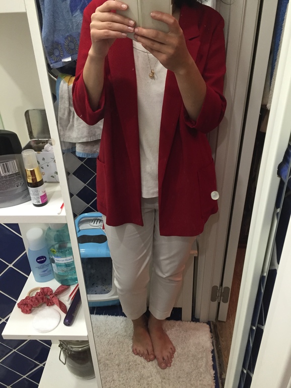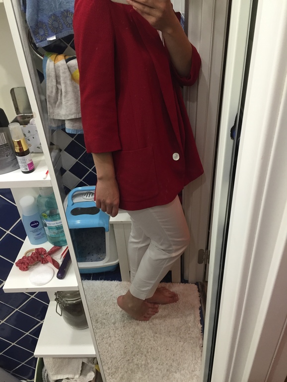 ПосоветуйтеОчень хотела пиджак- купила на зимней распродаже в заре , можно сказать без примерки)))) и очень радовалась покупке, пока не потеплело и не настало время его носить))))) пробовала с черными и белыми брюками- как-то не очень... Не могу понять, что не нравится, но что-то смущает... С джинсами тоже ни темными, ни светлыми не подходит... И все... Я в тупике... С чем его носить? 4 тыс потратила, а мечта о пиджаке так и не исполнилась😂