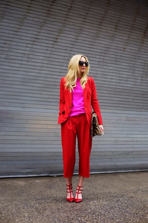 Такой цвет много с чем сочетается. Главное чтобы насыщенность цвета брюк совпала с насыщенностью пиджака. Не пастель и приглушенный цвет, а вот такой же насыщенно синий,зеленый. И джинсы такие должны быть не разбеленные. Шорты с отворотами не пробовали?