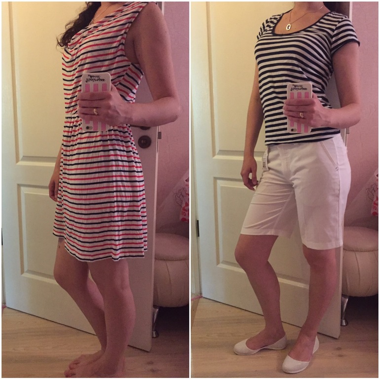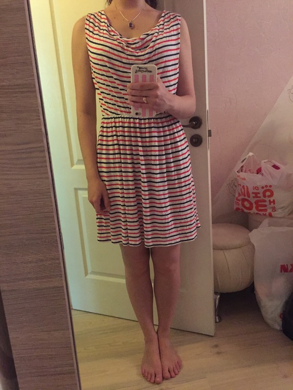 а вот платье не нравится. ткань очень тонкая, сверху полоски так, снизу эдак и стык сделан не красиво. да и ткань поведет после пары стирок((