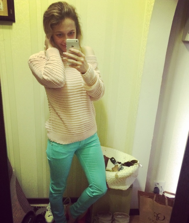 Если у Вас прохладно и не надеть летние вещички, приезжайте к нам, у нас + 37 (о ля ля), голой жарко будет! Брючки - цвет красивущий!