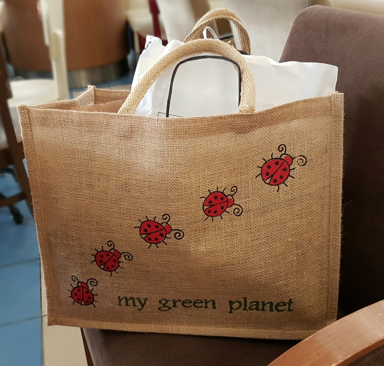 Да вот она у меня для фона стояла, я бабочками любуюсь))) думала на пляж ходить потом если что. А тут думаю чего бы вместо авоськи не использовать?! Она форму хорошо держит и вместительная ))))