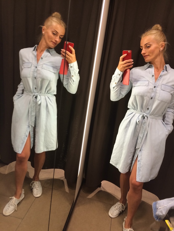 мне только джинсовое платье нравится, остальное не к лицу, а пиджак как будто велик