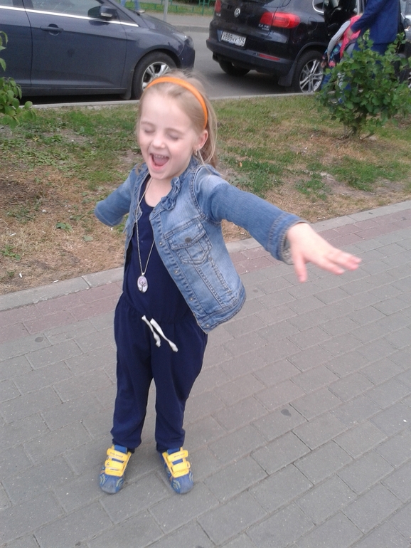 Комбез отличный и у тебя,и у Ви,красотки!!!Прическа у тебя сейчас какая-то новая,здорово!А вы где гуляете,если не секрет?мы в Москве и тоже гуляем)))
