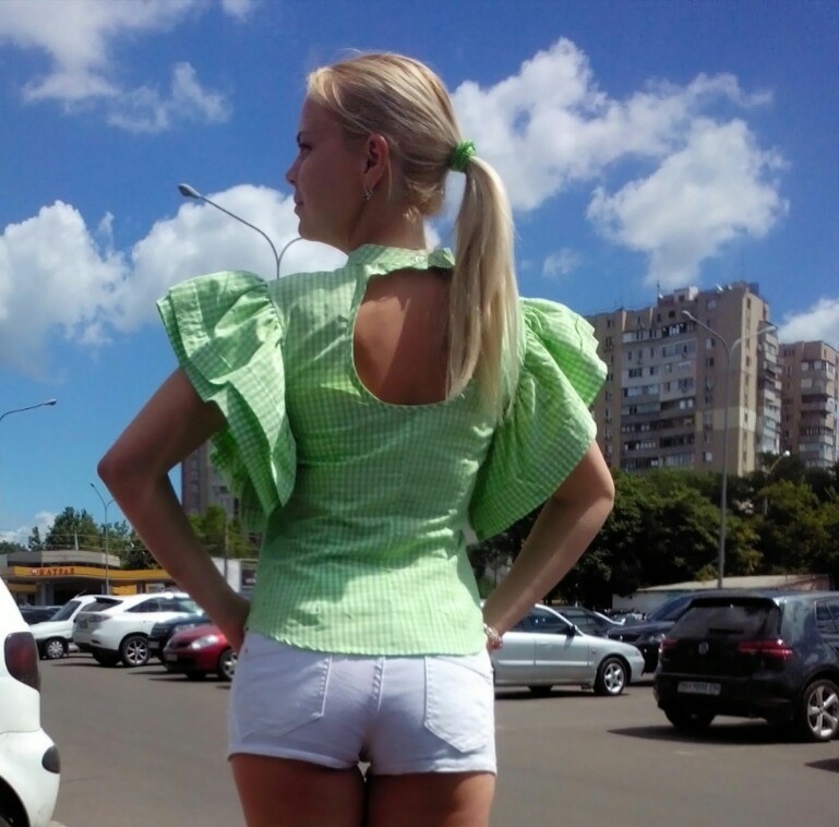 только не с шортами, сразу нарушаются все пропорции, ну и как-то не для шорт блузка. Юбка карандаш, брючки, каблук. Ниже хорошо написано.