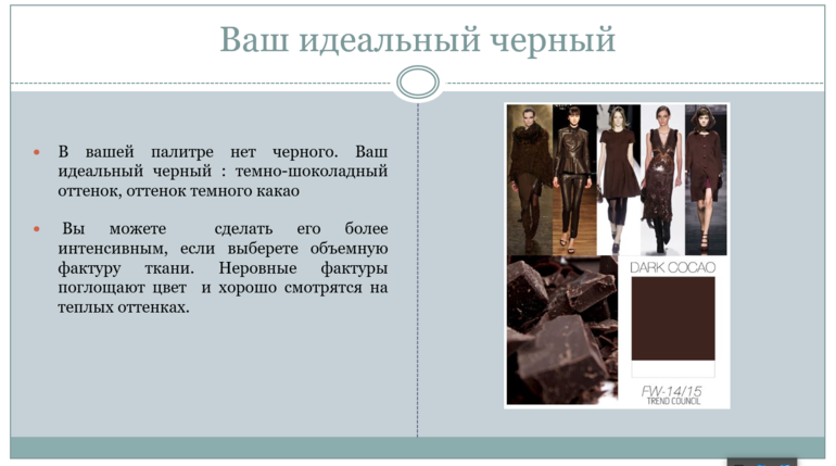 И конспект индивидуальных цветовых рекомендаций по текстурам.