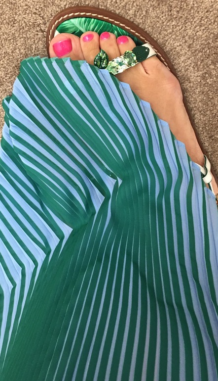Ношу только под лиловую блузу, что бы не " закрыть"цвет юбки, а подчеркнуть. С зеленой блузой юбка теряется. И отлично подошли мои новые сандалии✨✨✨